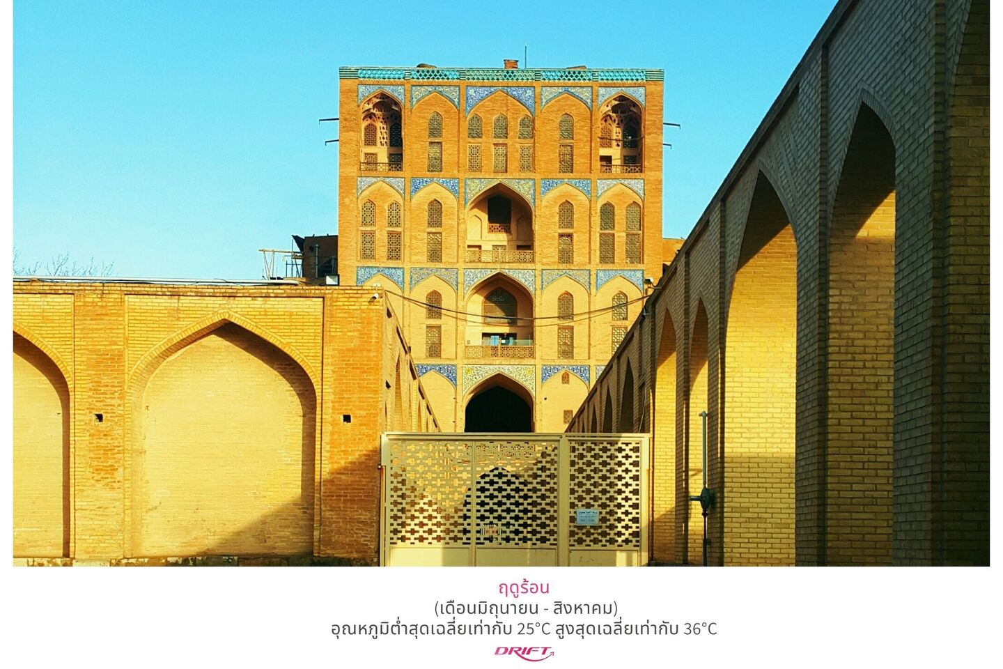 เสน่ห์ของฤดูร้อนถ้าคุณเป็นสายลุย และอยากสัมผัส "ความร้อน" ในแบบอิหร่าน ฤดูร้อนคือช่วงที่คุณจะได้เจอกับอุณหภูมิที่ค่อนข้างสูง แต่ใช่ว่าจะเที่ยวไม่ได้นะคะ!ช่วงนี้คนอิหร่านเองจะนิยมไปพักผ่อนทางตอนเหนือแถวทะเลแคสเปียน หรือขึ้นไปเที่ยวภูเขาเพื่อหนีความร้อนข้อดีคือ นักท่องเที่ยวต่างชาติน้อยลงมาก ทำให้การเข้าชมสถานที่สำคัญทางประวัติศาสตร์ เช่น ป้อมปราการและสถาปัตยกรรมต่างๆ เป็นไปอย่างสงบและสบายใจกว่าเดิมมากค่ะ