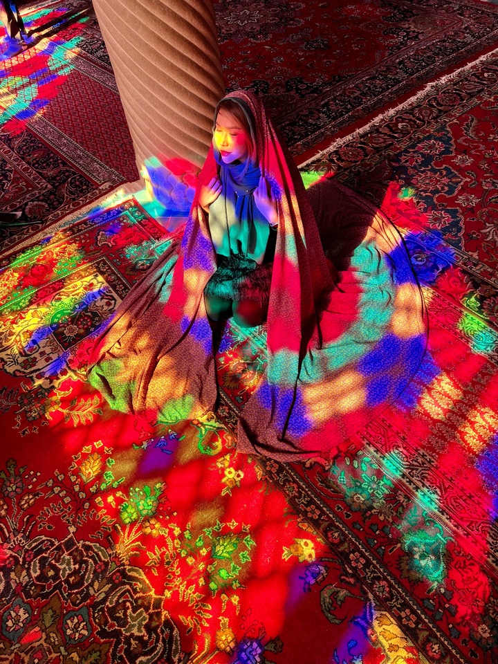 แสงที่ลอดผ่านกระจกสีลงมากระทบภายในห้องโถงจะทำให้เกิดภาพที่ พร่างพราย ฟรุ้งฟริ้ง จิงเกอร์เบล สุดๆ ราวกับว่าเรากำลังยืนอยู่ในตู้กระจกอัญมณี! เป็นภาพที่สวยสะกดจนทำให้ที่นี่ได้ชื่อว่าเป็น หนึ่งในมัสยิดที่สวยที่สุดในโลก
